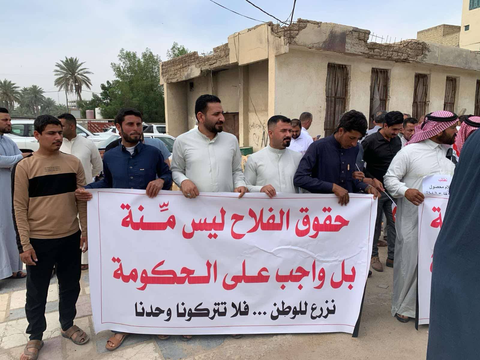 وذكر إعلام الاتحاد المحلي للجمعيات الفلاحية في كربلاء، أن المحتجين حملوا لافتات خطت عليها مطالبهم التي تتعلق بتوفير الدعم الحكومي وتأمين مستحقاتهم المالية وضمان تسويق منتجاتهم الزراعية إضافة إلى تحسين الخدمات الزراعية.