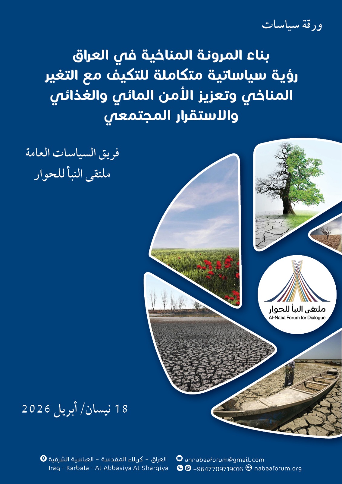 أعلن فريق السياسات العامة في ملتقى النبأ للحوار عن إصدار ورقة سياسات استراتيجية بعنوان "بناء المرونة المناخية في العراق: رؤية سياساتية متكاملة للتكيف مع التغير المناخي وتعزيز الأمن المائي والغذائي والاستقرار المجتمعي"، في خطوة تهدف إلى دعم صناع القرار وتقديم معالجات عملية لأحد أخطر التحديات التي تواجه البلاد.