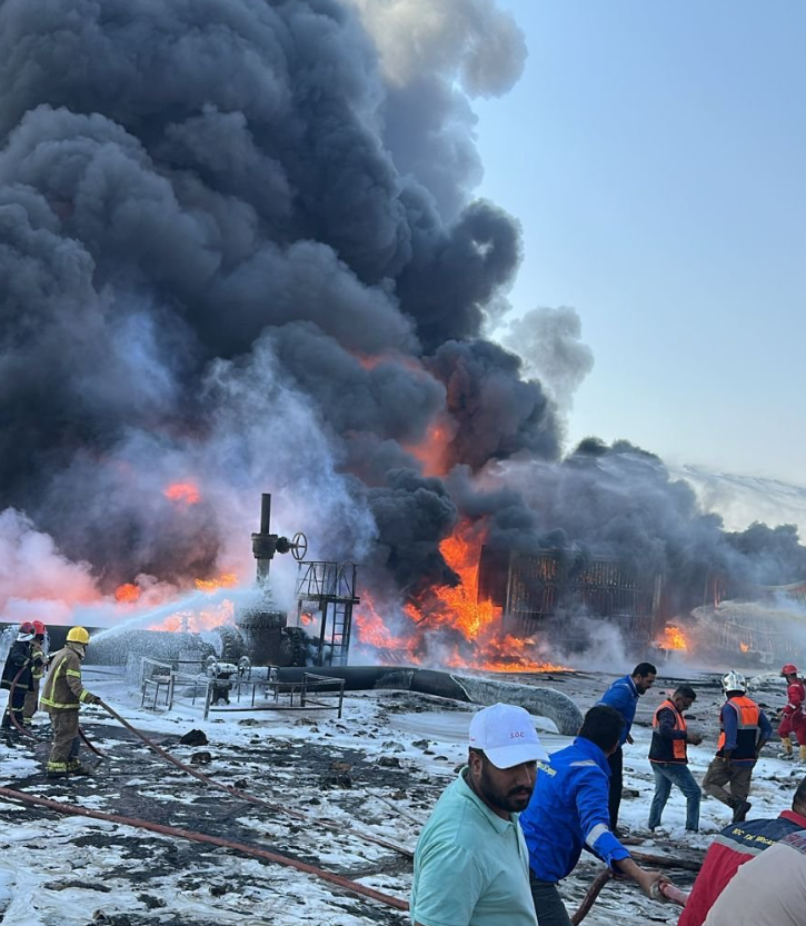 وهرعت فرق الدفاع المدني وفرق الإطفاء التابعة لقطاع النفط إلى موقع الحادث، حيث تمكنت من تطويق ألسنة اللهب ومنع انتشارها إلى بقية المنشآت النفطية المجاورة، في وقت أُفيد بوقوع خسائر بشرية بين صفوف العاملين، لم يُكشف عن عددها حتى الآن.