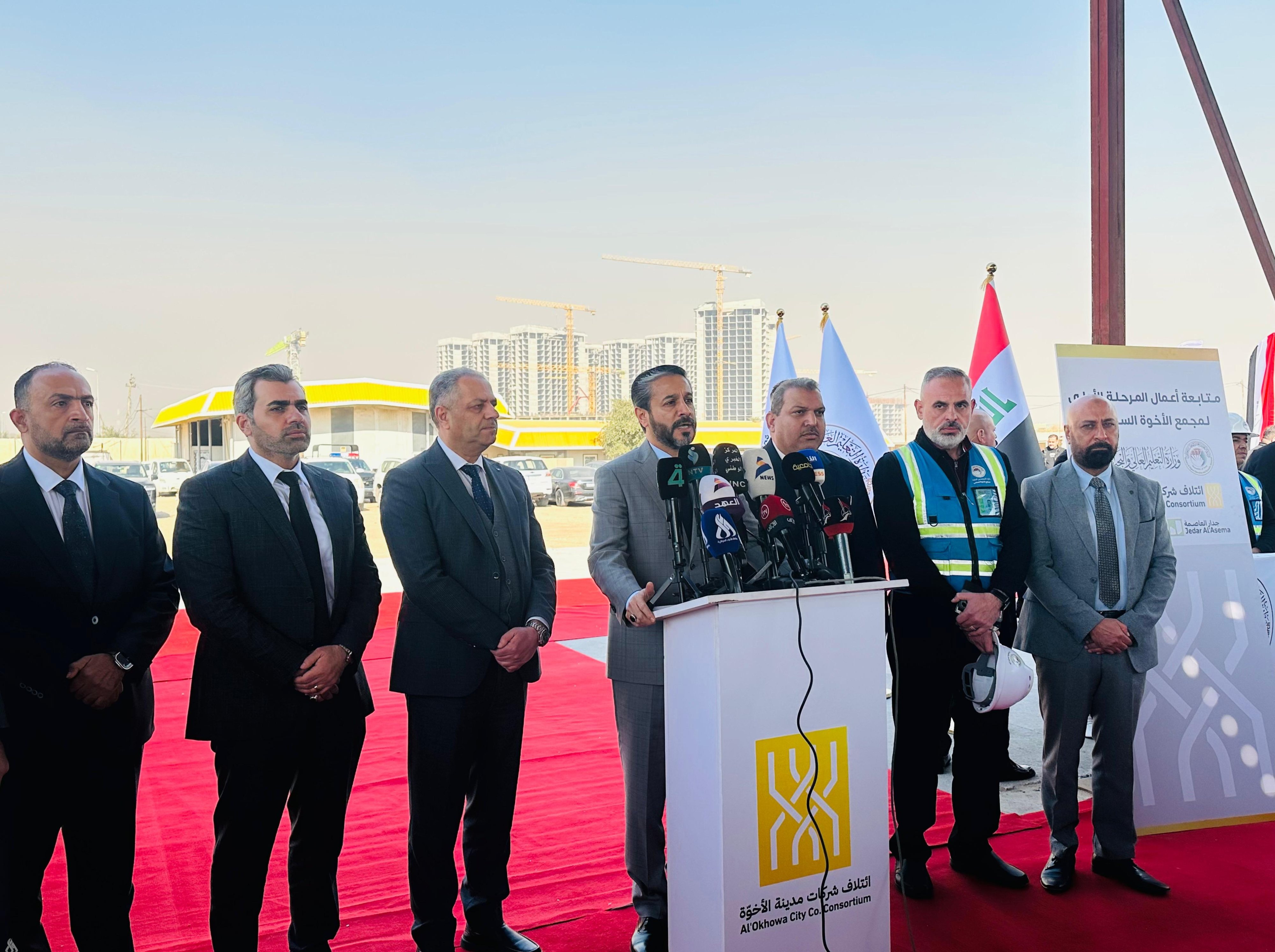 من جانبه، قال ممثل شركة آثار الوركاء المنفذة للمشروع، عبد الستار أحمد، إن “مدينة الأخوة السكنية تُعد من أبرز المشاريع الاستثمارية السكنية، وتستهدف شريحة مهمة من المجتمع وهم أساتذة وموظفو وزارة التعليم العالي”.
