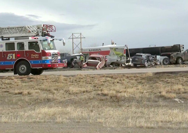 وذكرت شرطة الولاية أن الحادث وقع على الطريق السريع رقم 25 جنوب مدينة بوبيلو ، بعدما أدت الرياح العاتية إلى إثارة سحب كثيفة من الغبار، ما تسبب بظاهرة تُعرف بـ"انعدام الرؤية البني"، حيث فقد السائقون القدرة على الرؤية بشكل مفاجئ.