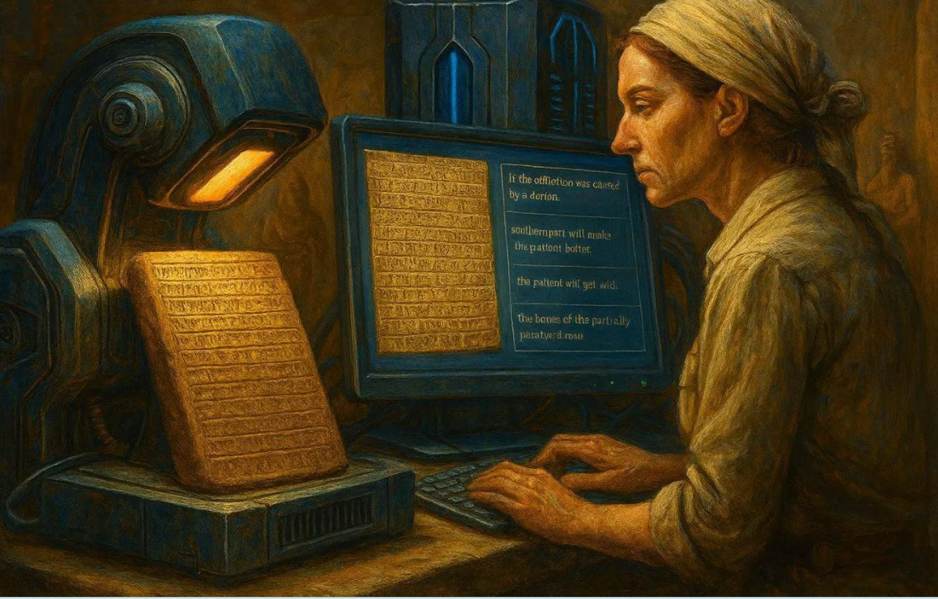 يبدو أن الذكاء الاصطناعي لا يمشي فقط نحو المستقبل، بل يمدّ نظره إلى الماضي أيضاً، كأنه يُصغي إلى همس الأجداد في ألواح الطين.