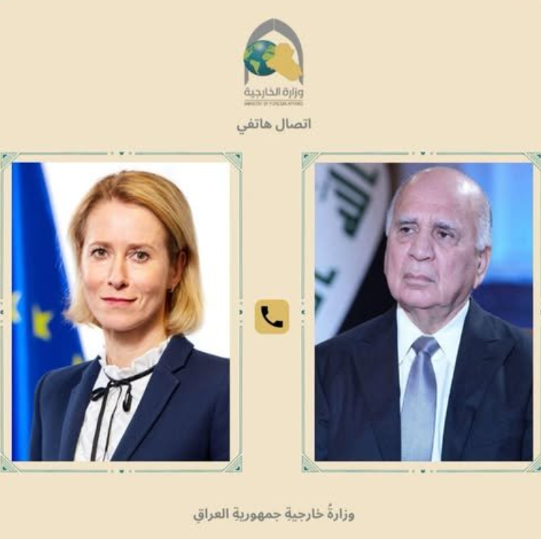 وذكرت وزارة الخارجية في بيان تلقته وكالة النبأ، أن فؤاد حسين تلقى اتصالاً هاتفياً من الممثلة العليا للشؤون الخارجية والسياسة الأمنية في الاتحاد الأوروبي، كايا كالاس، جرى خلاله بحث آفاق العلاقات الثنائية بين جمهورية العراق والاتحاد الأوروبي وسبل تعزيز التعاون المشترك في مختلف المجالات ذات الاهتمام المتبادل.