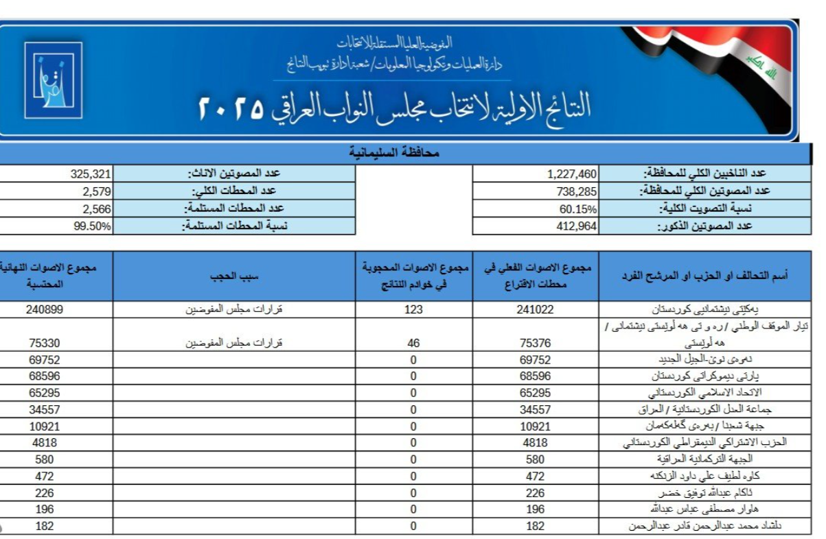 النتائج الأولية للانتخابات النيابية في محافظة كركوك