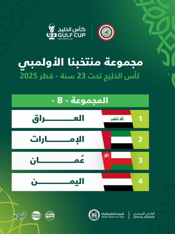 وذكر الاتحاد العراقي لكرة القدم في بيان مقتضب، أن "المنتخب الأولمبي سيخوض منافسات البطولة ضمن المجموعة الثانية، التي تضم منتخبات الإمارات وعمان واليمن، في النسخة التي تستضيفها قطر الشهر المقبل".