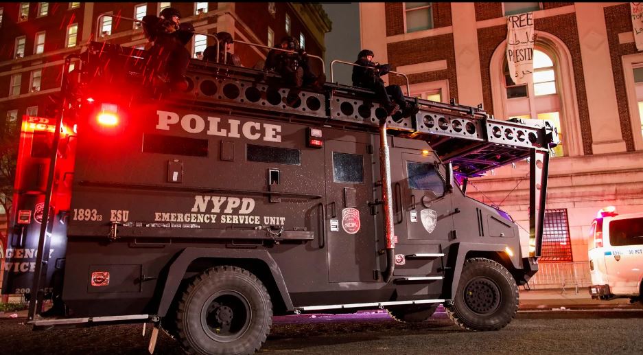 انتشرت عبر هواتفهم صور ومقاطع فيديو لـ7 حافلات لنقل المحتجزين، جهزتها الشرطة جنوبي الحرم الجامعي، بعد مرور 18 ساعة على بدء اعتصام طلبة محتجين مؤيدين للفلسطينيين في أحد مباني جامعة كولومبيا.