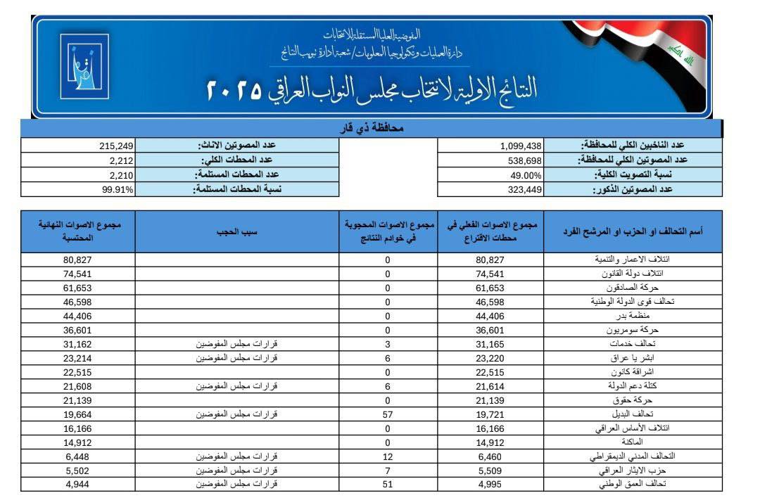 النتائج الأولية للانتخابات النيابية في محافظة واسط