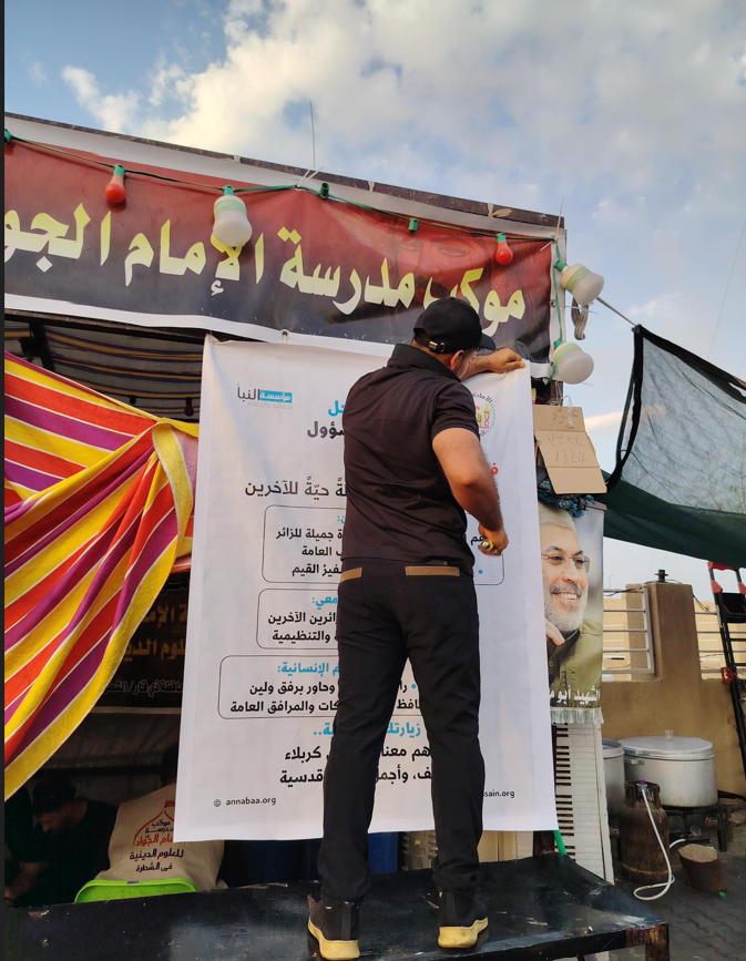 كما تم تعليق لافتات "فلكسات" إرشادية على المداخل الرئيسية للمدينة، حيث انطلقت الحملة من مدخل النجف وتواصل نشاطها بشكل يومي على مختلف المحاور المؤدية إلى كربلاء.