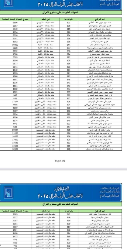 أصوات المكونات في الانتخابات النيابية على مستوى العراق:
