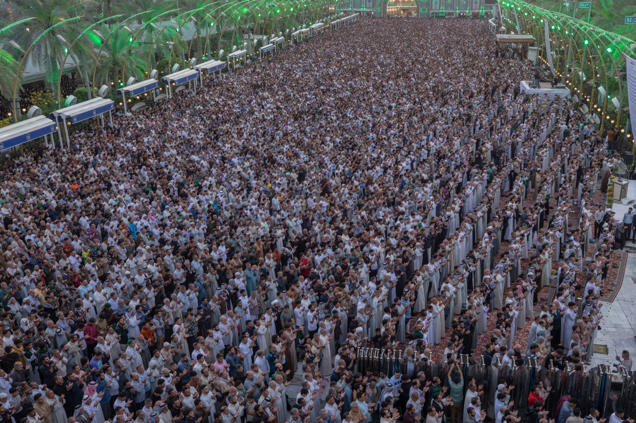 أدى آلاف المصلين صلاة عيد الفطر المبارك عند المرقدين الطاهرين للإمام الحسين وأخيه أبي الفضل العباس عليهما السلام.