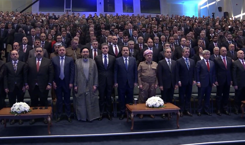 وشهدت الجلسة الافتتاحية حضور رئيس الوزراء محمد شياع السوداني، ورئيس الحزب الديمقراطي الكردستاني مسعود بارزاني، ورئيس مجلس القضاء الأعلى فائق زيدان، إلى جانب مئات القادة السياسيين والدبلوماسيين والخبراء والأكاديميين من مختلف دول العالم.