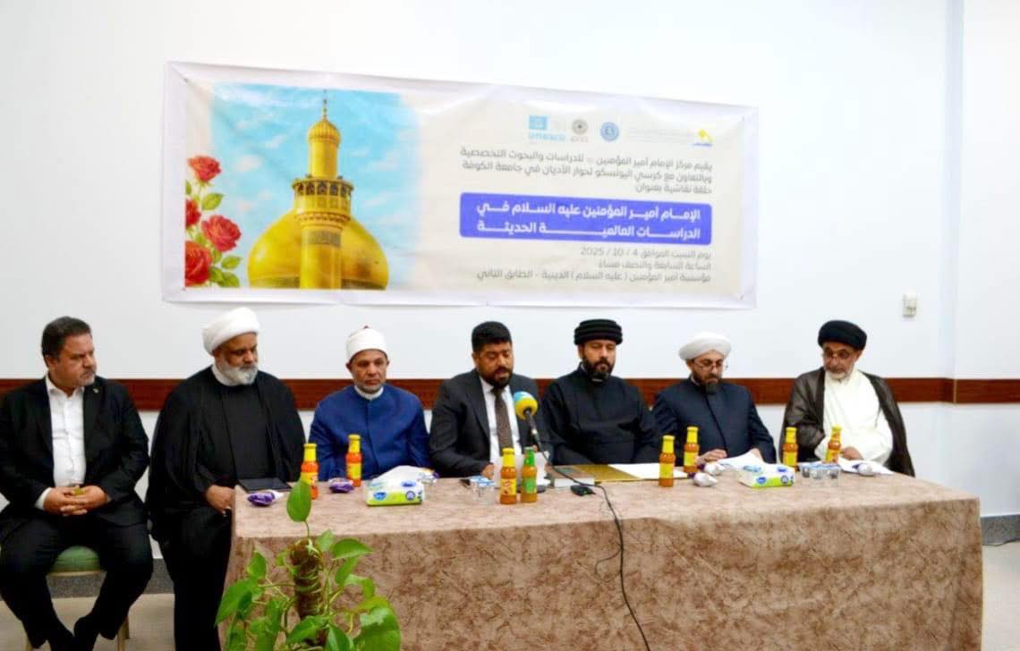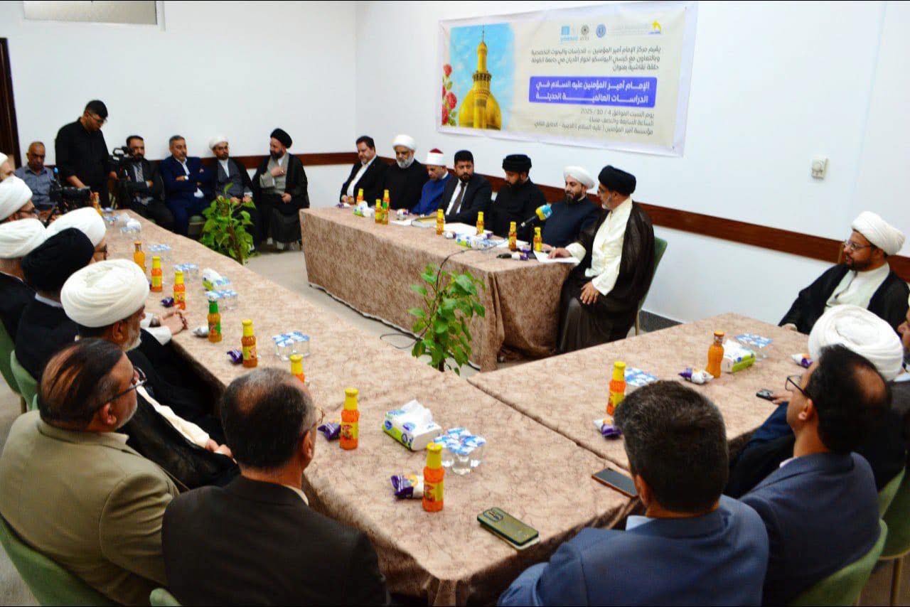 أقام مركز الإمام أمير المؤمنين للدراسات والبحوث التخصصية في النجف الأشرف، بالتعاون مع كرسي اليونسكو للحوار في جامعة الكوفة، حلقة حوارية دولية بعنوان:"الإمام أمير المؤمنين في الدراسات العالمية الحديثة".