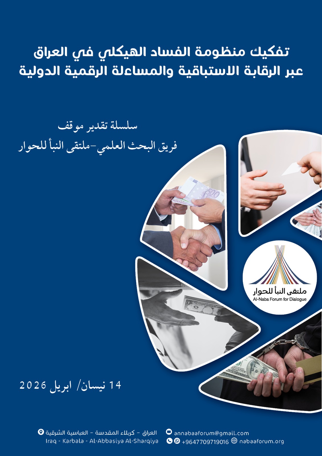 أعلن فريق البحث العلمي لدى ملتقى النبأ للحوار عن إصدار ورقة سياسات استراتيجية بعنوان "تفكيك منظومة الفساد الهيكلي في العراق عبر الرقابة الاستباقية والمساءلة الرقمية الدولية"، في خطوة تهدف إلى دعم صناع القرار وتعزيز منظومة النزاهة الوطنية وبناء إطار مؤسسي أكثر شفافية واستدامة.