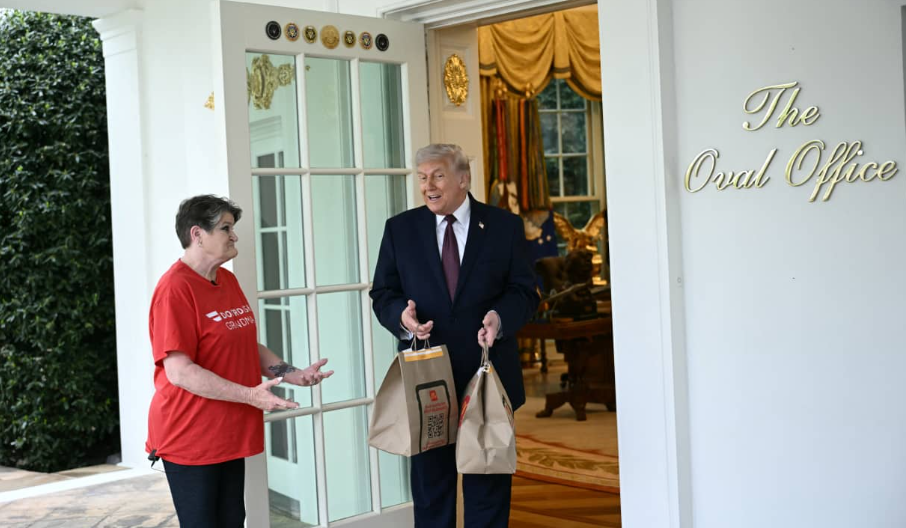 في مشهد غير تقليدي داخل الجناح الغربي، استدعى دونالد ترامب عدداً من الصحفيين إلى البيت الأبيض، قبل أن تتحول اللحظة إلى استعراض مفاجئ حين فتح الباب لاستقبال سيدة تُعرّف نفسها بـ"جدة DoorDash"، تحمل وجبات من ماكدونالدز.