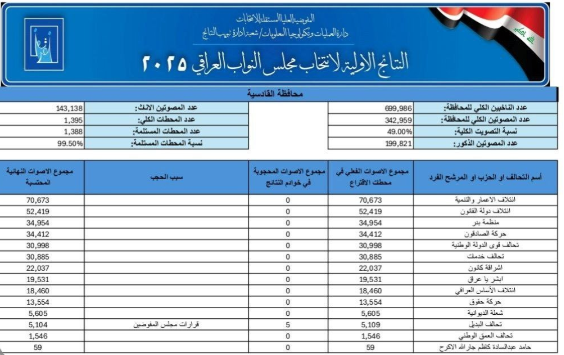 النتائج الأولية للانتخابات النيابية في محافظة ديالى