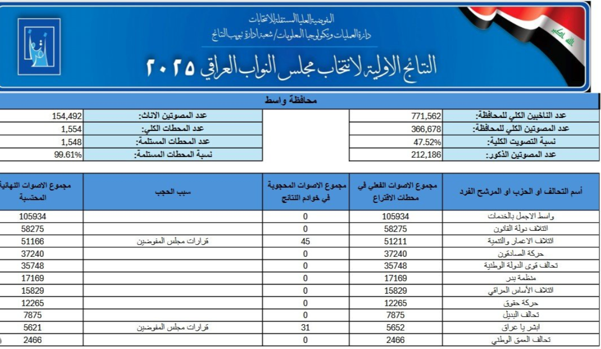 النتائج الأولية للانتخابات النيابية في محافظة كركوك