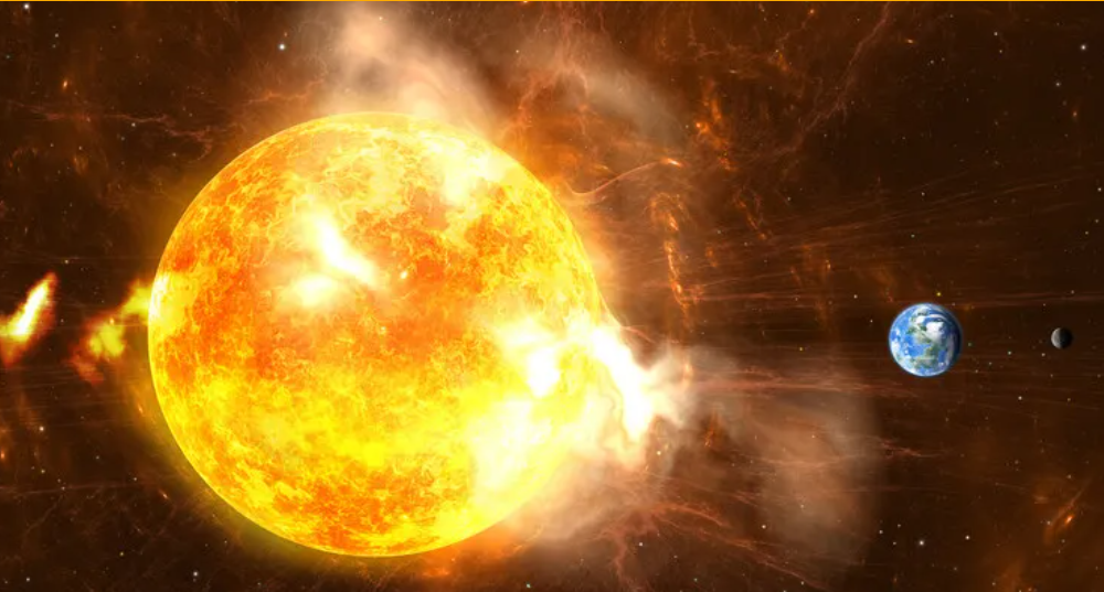 وتبلغ شمسنا منتصف عمرها تقريبا، وهو ما ينطبق بدوره على كوكب الأرض. وعندما تستنفد النجوم وقود الهيدروجين النووي، يتضخم قطرها إلى أكثر من مئة ضعف، مسببة ابتلاع أي كواكب تقع في مدارات قريبة منها.