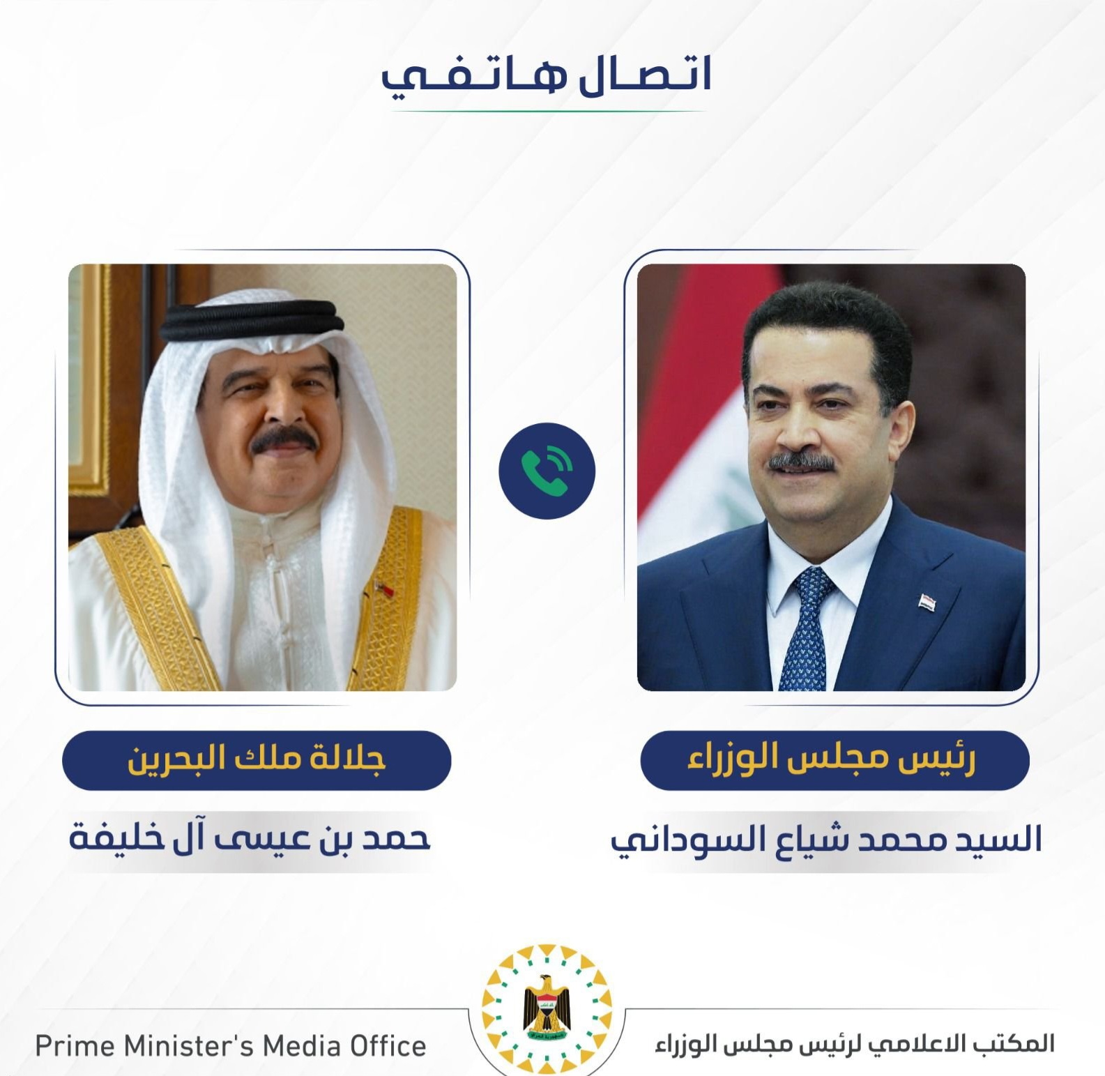 وأضاف البيان أن الاتصال شهد التأكيد على عمق العلاقات الأخوية المتميزة التي تجمع العراق والبحرين، وبحث آفاق تطويرها في مختلف المجالات، بما يخدم المصالح المشتركة للبلدين ويعزز التعاون البنّاء في مواجهة التحديات الإقليمية والدولية.