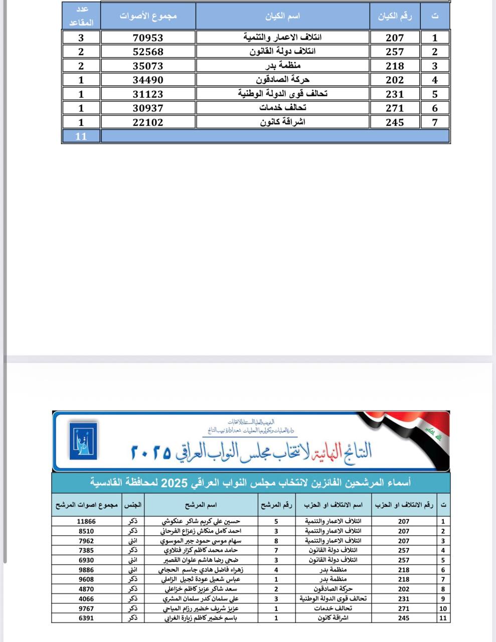 النتائج النهائية للانتخابات البرلمانية في محافظة واسط