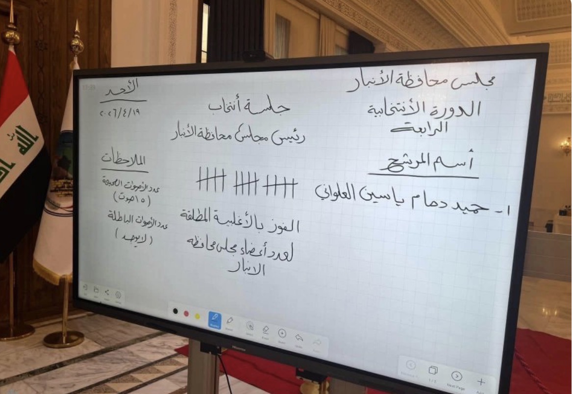 صوت مجلس محافظة الأنبار ، اليوم اﻷحد، على حميد دحام العلواني رئيساً له.وقال مراسل وكالة النبأ، إن : مجلس محافظة اﻷنبار صوت في جلسته السادسة التي عقدت اليوم على اختيار حميد دحام العلواني لشغل منصب رئيس مجلس المحافظة.