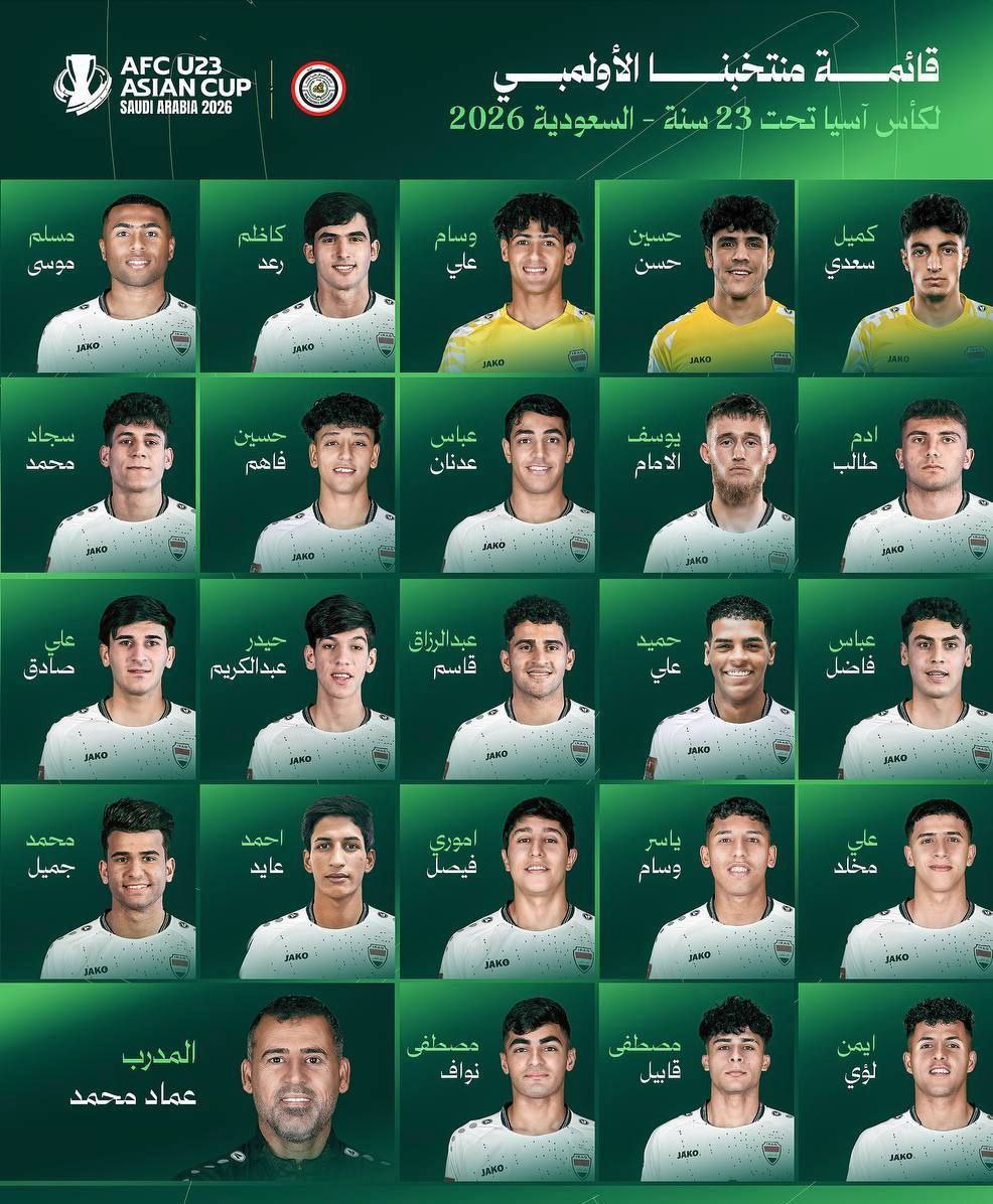 كشف الجهاز الفني للمنتخب الوطني الأولمبي، بقيادة الكابتن عماد محمد، اليوم السبت، عن القائمة الرسمية التي ستشارك في نهائيات كأس آسيا تحت 23 عاماً، والتي تستضيفها المملكة العربية السعودية مطلع العام 2026.