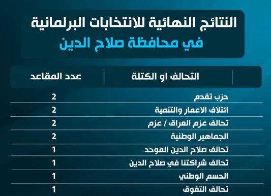 النتائج النهائية للانتخابات البرلمانية في محافظة صلاح الدين