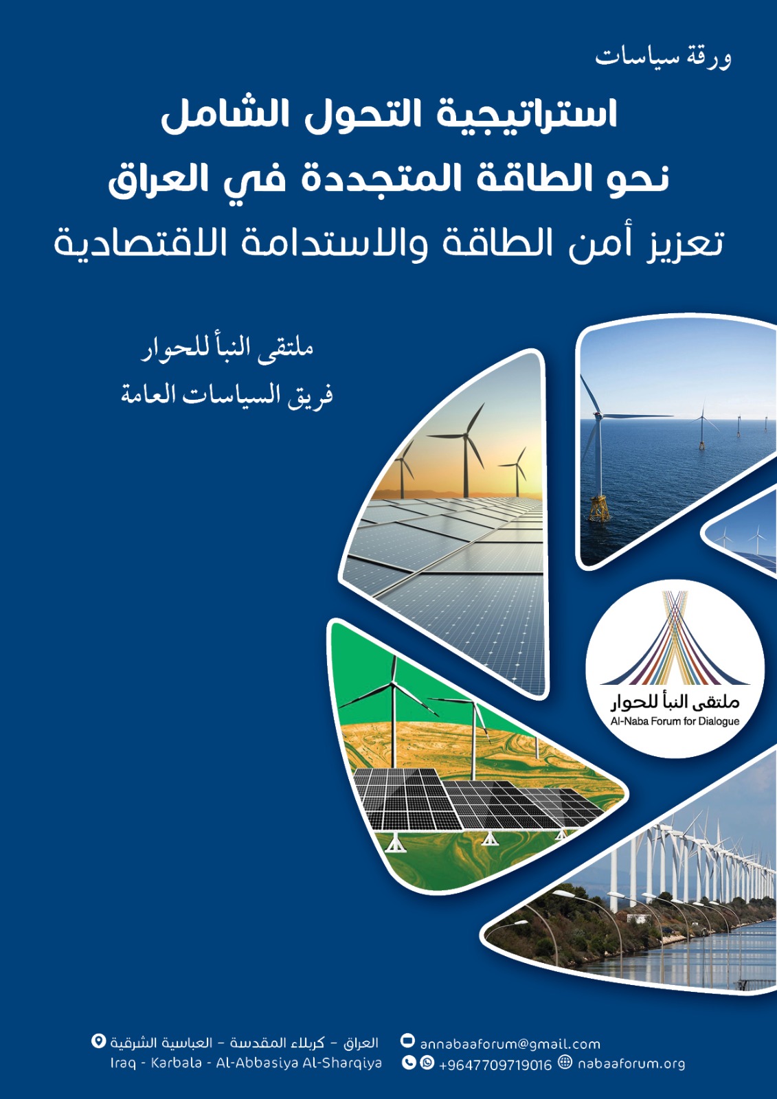 أعلن ملتقى النبأ للحوار وعبر فريق السياسات العامة، عن إصدار ورقة سياسات جديدة بعنوان "استراتيجية التحول الشامل نحو الطاقة المتجددة في العراق: تعزيز أمن الطاقة والاستدامة الاقتصادية"، وذلك في إطار جهوده لدعم مسارات الإصلاح الاقتصادي وتعزيز كفاءة قطاع الطاقة في العراق.