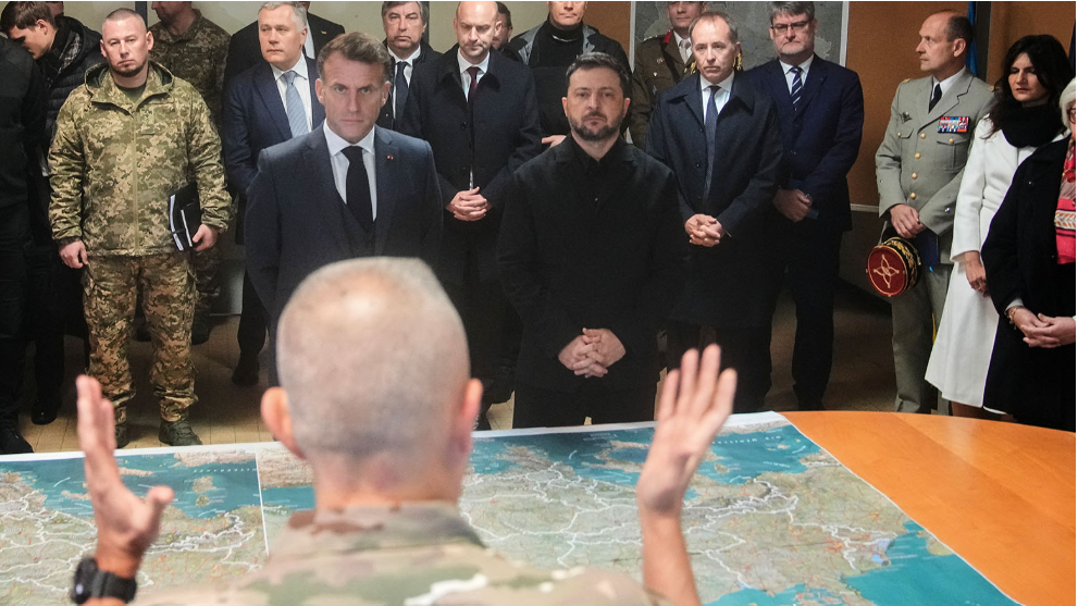 واستقبل ماكرون نظيره الأوكراني في قاعدة فيلاكوباي، حيث قدّم صناعيون للطرف الأوكراني الذي يخوض حربا مع روسيا منذ 2022، الطائرة المقاتلة الفرنسية "رافال" مع أنظمتها التسليحية، والجيل الجديد من نظام الدفاع الجوي "سامب-تي" (SAMP-T)، إضافة إلى عدة أنظمة مسيّرات.