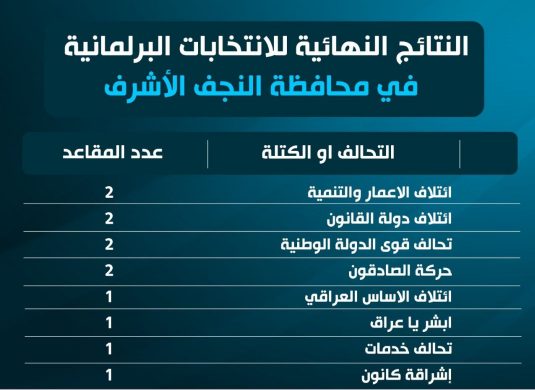 النتائج النهائية للانتخابات البرلمانية في محافظة كربلاء المقدسة