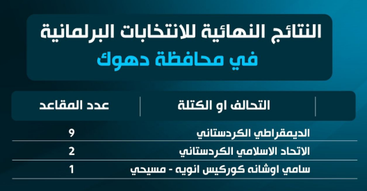النتائج النهائية للانتخابات البرلمانية في محافظة دهوك
