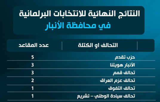 النتائج النهائية للانتخابات البرلمانية في محافظة صلاح الدين