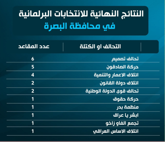 النتائج النهائية للانتخابات البرلمانية في محافظة البصرة