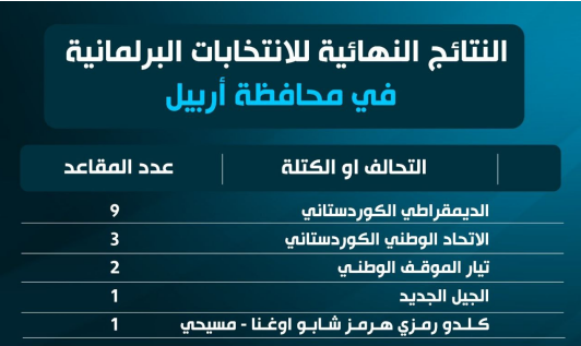 النتائج النهائية للانتخابات البرلمانية في محافظة أربيل