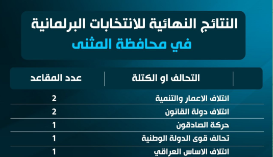 النتائج الأولية للانتخابات النيابية في محافظة المثنى