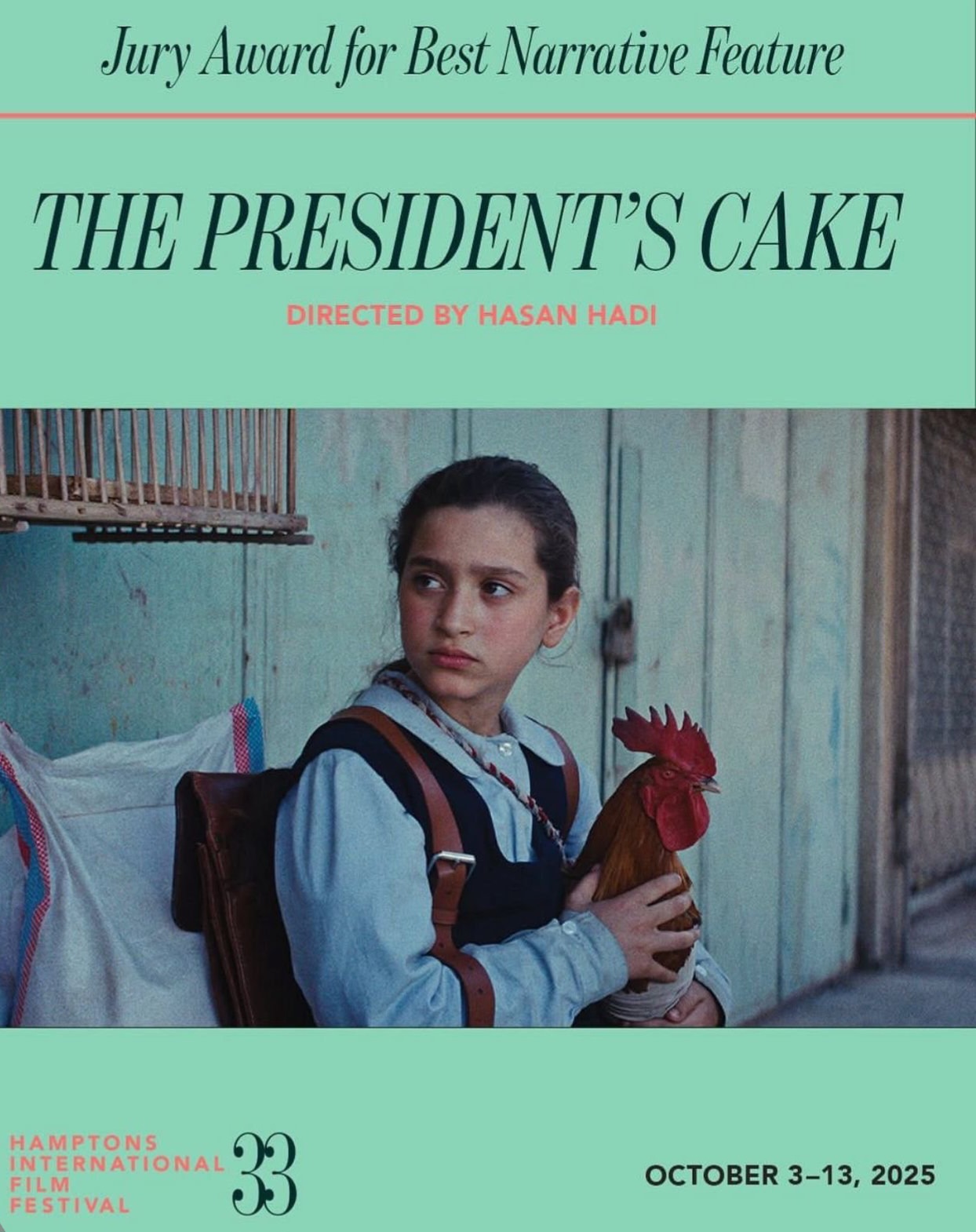 حقق الفيلم العراقي "كعكة الرئيس" للمخرج حسن هادي إنجازاً سينمائياً جديداً بفوزه بجائزة أفضل فيلم روائي في الدورة الـ33 من مهرجان هامبتونز السينمائي الدولي بمدينة نيويورك، ليصبح أول فيلم عراقي ينال هذه الجائزة المرموقة.