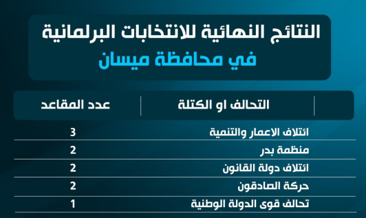 النتائج النهائية للانتخابات البرلمانية في محافظة ميسان