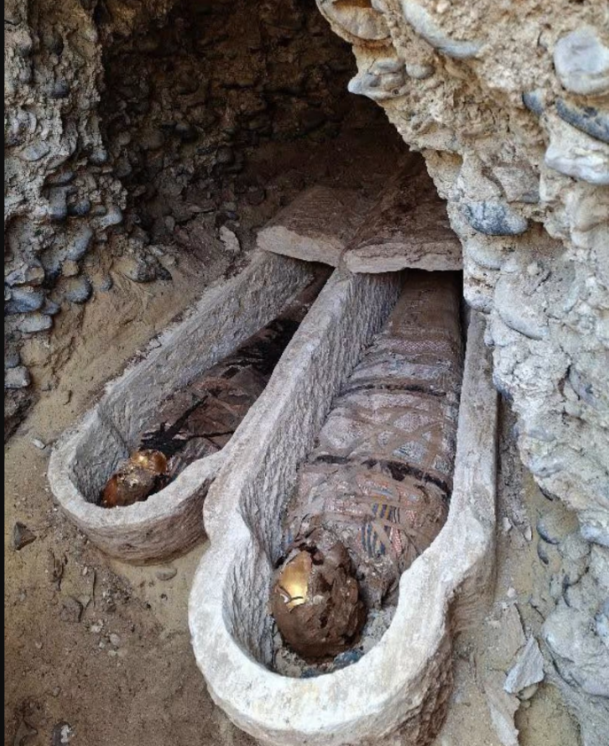 وأسفرت أعمال الحفائر عن اكتشاف "عدد من المومياوات التي تعود للعصر الروماني، بعضها ملفوف بلفائف مزخرفة بزخارف هندسية، إلى جانب توابيت خشبية، وثلاثة ألسنة ذهبية وآخر من النحاس، فضلًا عن وجود دلائل على استخدام رقائق الذهب على بعض المومياوات"، وفقا للبيان.