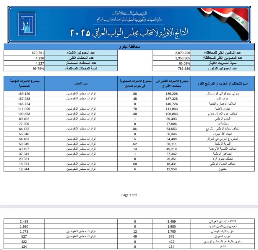 النتائج الأولية للانتخابات النيابية في محافظة كركوك