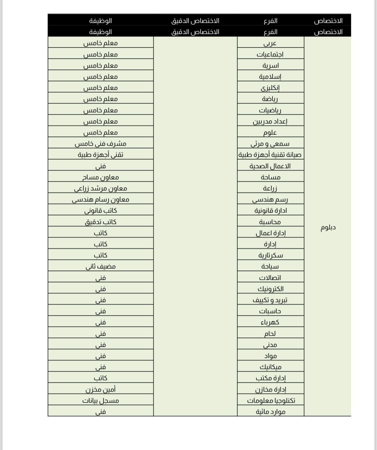 وبينت أن "الاختصاصات المطلوبة مرفقة في الجدول ادناه وفي حال عدم تغطية عدد المتقدمين للمقاعد المطلوبة ضمن القناة الواحدة ، يتم مناقلة المقاعد الشاغرة إلى الإختصاصات الأخرى ضمن نفس القناة .