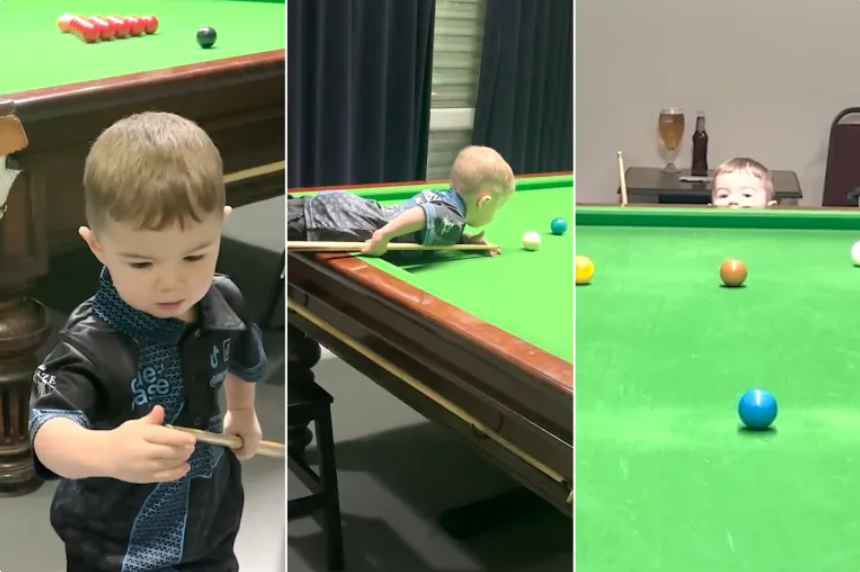 وبعد ذلك، وببلوغه عامين و302 يوما، حقق رقما قياسيا آخر بوصفه أصغر شخص ينفذ ضربة التسديد عبر الحافة المعروفة باسم "pool bank shot".