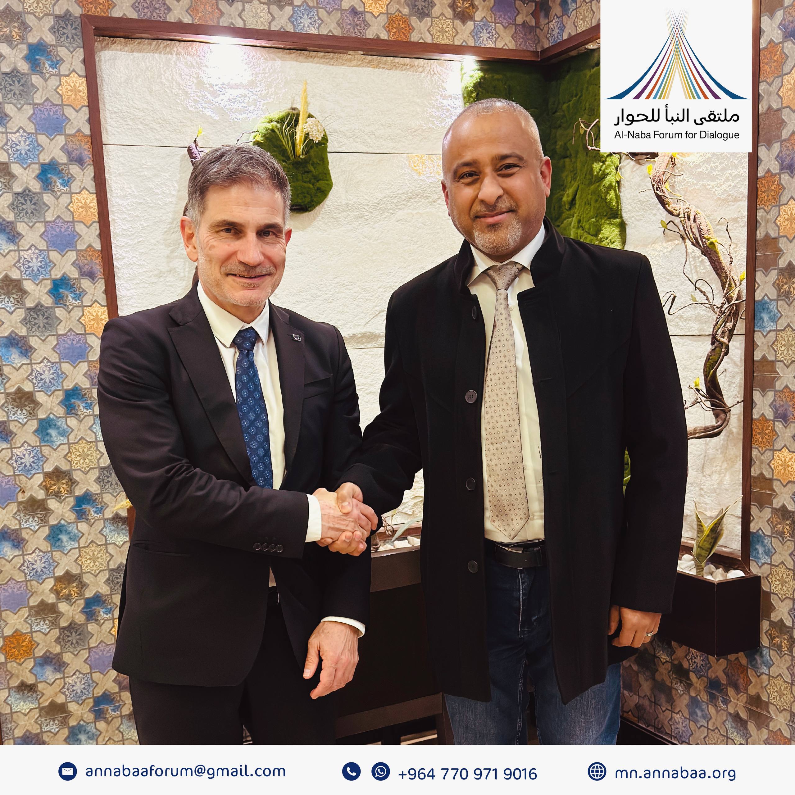 التقى رئيس ملتقى النبأ للحوار، علي الطالقاني، مع سفير بعثة الاتحاد الأوروبي في العراق، السيد كليمنس سيمتنر، يوم الأربعاء (بحضور عدد من مديري المنظمات) آفاق تطوير القطاع المصرفي وتعزيز العمل المؤسسي.