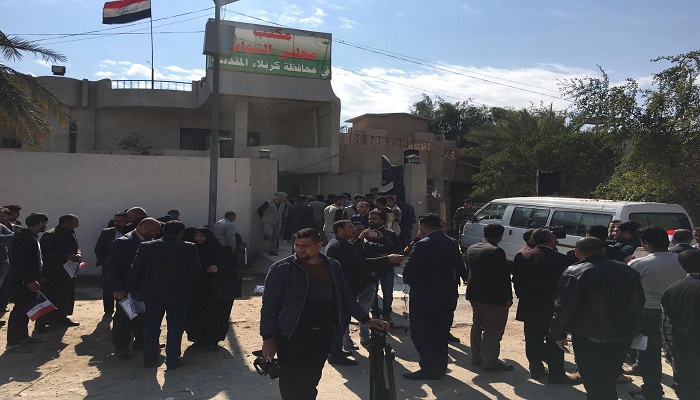 تظاهر العشرات من ابناء كربلاء امام مجلس النواب العراقي مكتب كربلاء المقدسة وذلك اليوم الثلاثاء مطالبين بسن قانون انتخابي جديد يحمي حقوق المرشحين المستقلين واقالة او استبدال اعضاء مجلس المفوضين في المفوضية العليا المستقلة للانتخابات باعضاء جدد من القضاء الاعلى او ممثلين من قادة منظمات المجتمع المدني و ممثلين من الامم المتحدة.