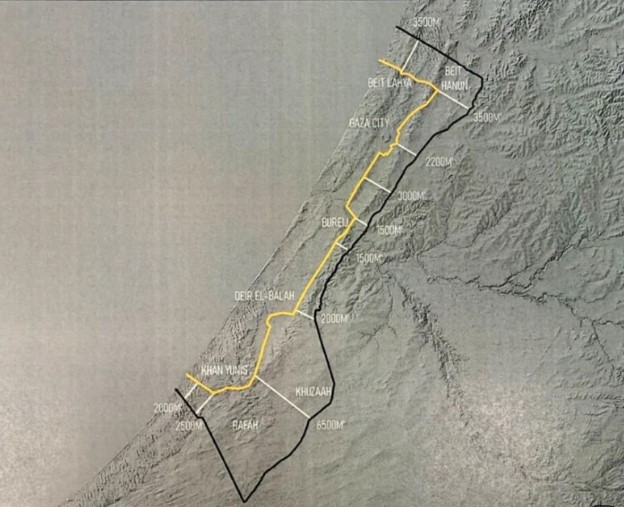 وتشير الخريطة إلى أن القوات (الإسرائيلية) ستنسحب من محوري موراغ ونيتساريم، ما يفتح المجال أمام حرية التنقل بين المناطق الفلسطينية، في حال جرى تنفيذ الخطة كما هي مرسومة.